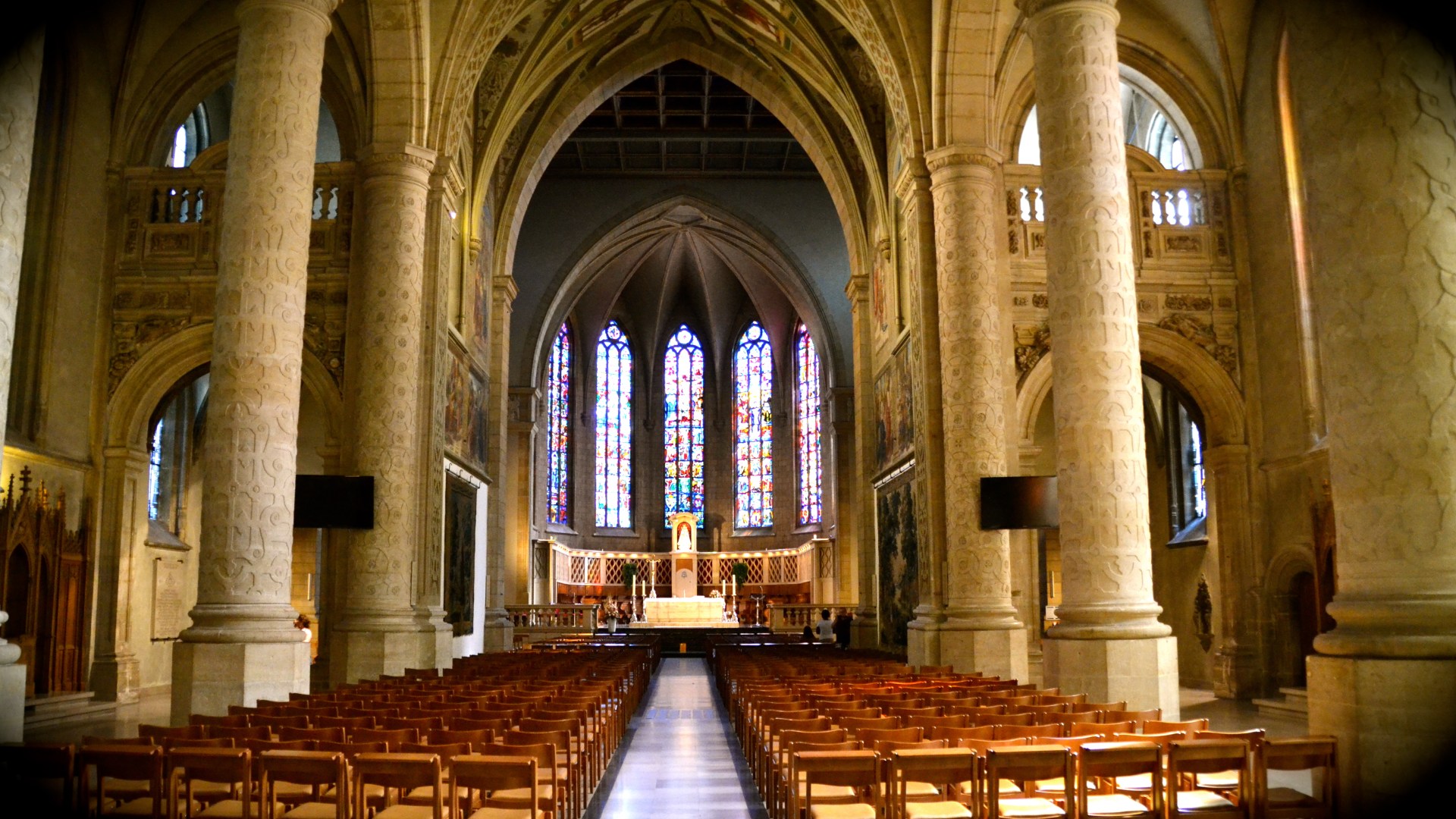 Our first stop was the Notre Dame Cathedral. This building was amazing – I didn’t capture it very well in my photos. But the stained glass windows in this church were beautiful. It was a little newer than some of the buildings we saw on this trip – it’s cornerstone was laid in the 1613. So it’s a baby by European church standards.